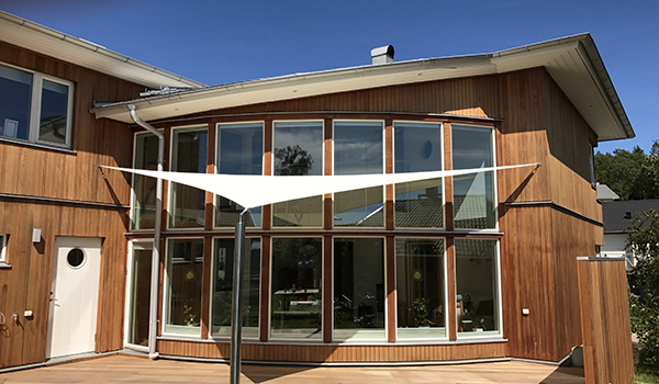 Solsegel, Nätduk, Två solsegel uppspända för att ge skugga på skolans gård.